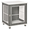 PawHut Dog Crate, Pet Cage Kennel, End Table Furniture Style, Indoor Decorative Dog House, with Wooden Top, Adjustable Feet, for Small Dogs, Grey