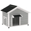 PawHut Dog House, Wooden Dog Kennel Outdoor with Openable Asphalt Roof, Removable Floor, Door Curtain, Elevated Feet, for Medium Dogs, Light Grey
