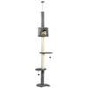 PawHut Floor to Ceiling Cat Tree for Indoor Cats, Kitten Tower, Condo, Multi-Layer Activity Center, Indoor Pet Play House with Solid Scratching Post Hanging Balls, Light Grey