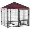 - - Rotatable bowls: This dog run with a roof offers a comfortable space for eating, drinking and resting. Rotatable bowls allow easy access for refilling food and water from the outside for added convenience.