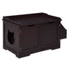 PawHut Wooden Cat Litter Box Enclosure, Hidden Cat Washroom, Kitten House with Nightstand End Table and Storage Rack Magnetic Doors, Brown