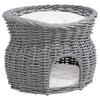 PawHut 2-Tier Wicker Cat House Elevated Pet Bed Basket Willow Kitten Tower Pet Den. Cozy Cave with Washable Cushions 56x37x40cm Grey