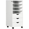 Vinsetto Vertical Filing Cabinet, Mobile File Cabinet on Wheels with 3 Drawers and 4 Open Shelves, Printer Stand with Lockable Casters for Home Office, White